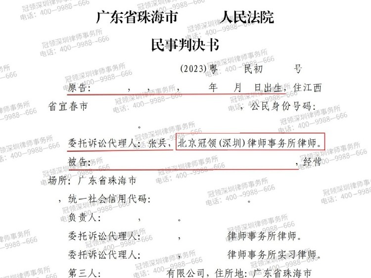 2025年1月,深圳的伟业公司因昌盛公司长期拖欠材料款,求助到北京冠领(深圳)律师事务所。2025年9月,经过冠领律师的专业代理,法院判决昌盛公司限期向伟业公司支付材料款24万余元及逾期付款违约金1万余元,昌盛公司的一人股东赵先生对此承担连带责任。