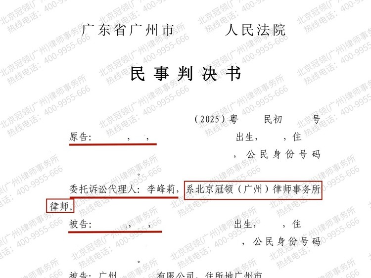 2025年8月27日,广州市人民法院对一起机动车交通事故责任纠纷案作出判决,采纳北京冠领(广州)律师事务所律师的代理意见,判决保险公司向当 【查看全文】