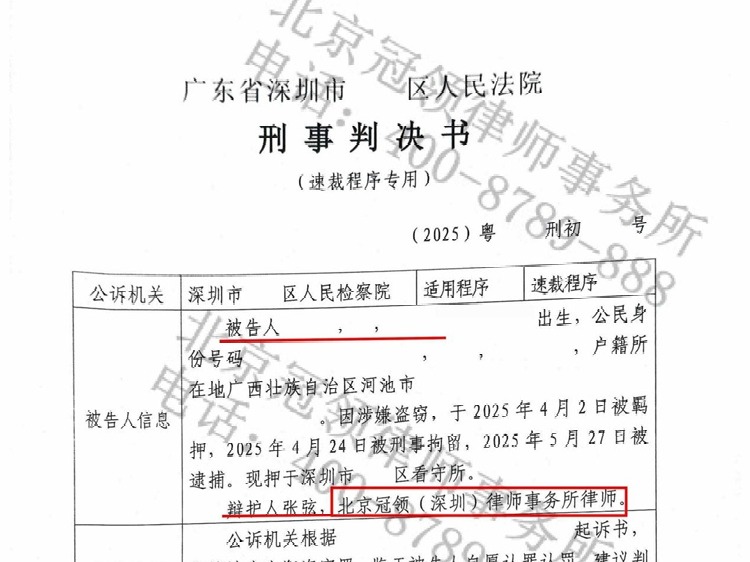 近期,冠领律师担任广东深圳一起涉嫌盗窃罪案件辩护人,该案嫌疑人陈某涉及4次跨市盗窃行为。冠领律师接受其家属委托后,深入挖掘案件细节,并与司法 【查看全文】