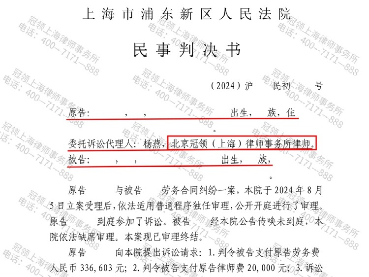 干活时尽心尽力,要钱时却有口难开!亲戚拖欠劳务费,情谊面前,权益该怎么办?2025年3月,北京冠领(上海)律师事务所成功代理一起劳务合同纠纷 【查看全文】