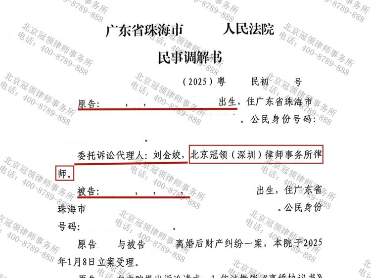 2025年1月,珠海市某区人民法院成功调解一起涉及离婚后财产分割的纠纷案件。在北京冠领(深圳)律师事务所律师的专业协助下,当事人张彬与岳兰达 【查看全文】