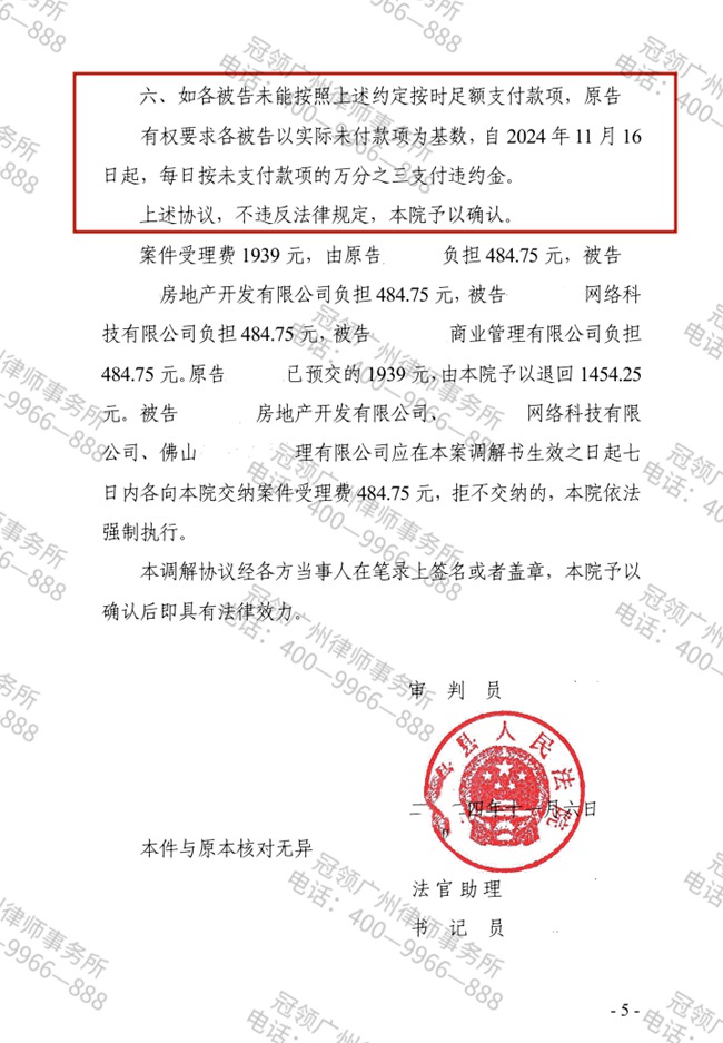 2024年7月,广州的康女士在购房过程中遭遇开发商隐瞒备案价、虚构优惠等欺诈行为,签订合同后发现条款显失公平。委托北京冠领(广州)律师事务所维权后,经法院主持调解,双方达成解除合同、退还购房款的协议。冠领律师在代理过程中,通过梳理交易细节、固定欺诈证据、援引法律条文,成功为康女士争取合法权益,挽回17万余元损失。