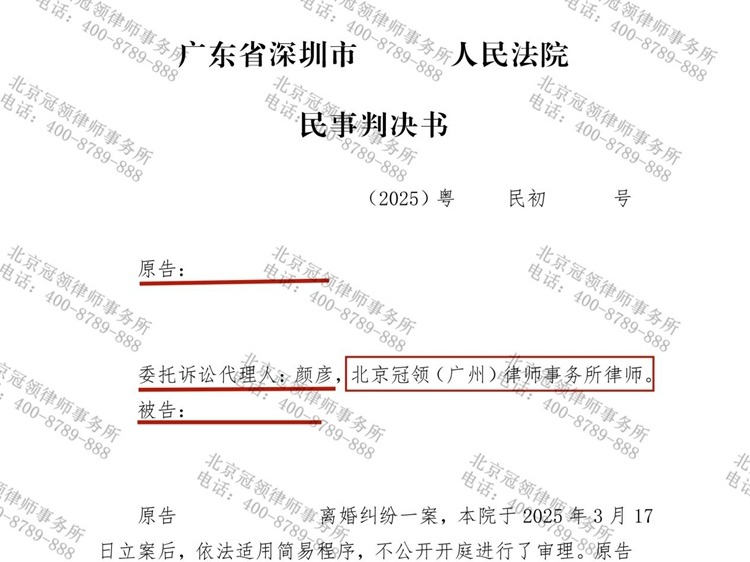 近日,北京冠领(广州)律师事务所代理的一起离婚纠纷案经深圳市中级人民法院终审判决维持原判,准予双方解除婚姻关系。这起因长期分居导致感情破裂的 【查看全文】