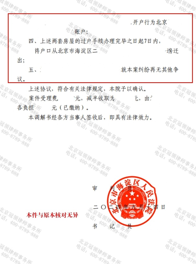 北京海淀的张文(化名)与张斌(化名)兄弟二人的父母先后去世后,留下两处位于北京市海淀区的房产。2023年3月,弟弟张斌找到张文声称要办理出租房屋相关手续,让张文签署了一份内容涉及父母遗产分割的说明。后张文察觉,要求张斌撤销说明却遭拒。为此,张文求助到北京冠领律师事务所。冠领律师以诉促调,双方在2024年9月达成协议:被继承人名下的两套房屋张文与张斌各继承一套,张斌需向张文支付房屋补偿款22万元。