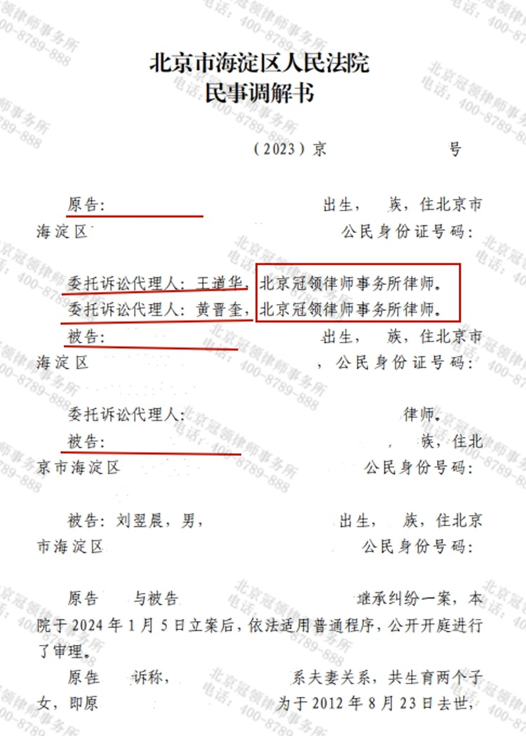 为了维护自己的合法继承权益,张文向北京冠领律师事务所求助。经律所研判,委派王道华律师、黄晋奎律师代理此案。