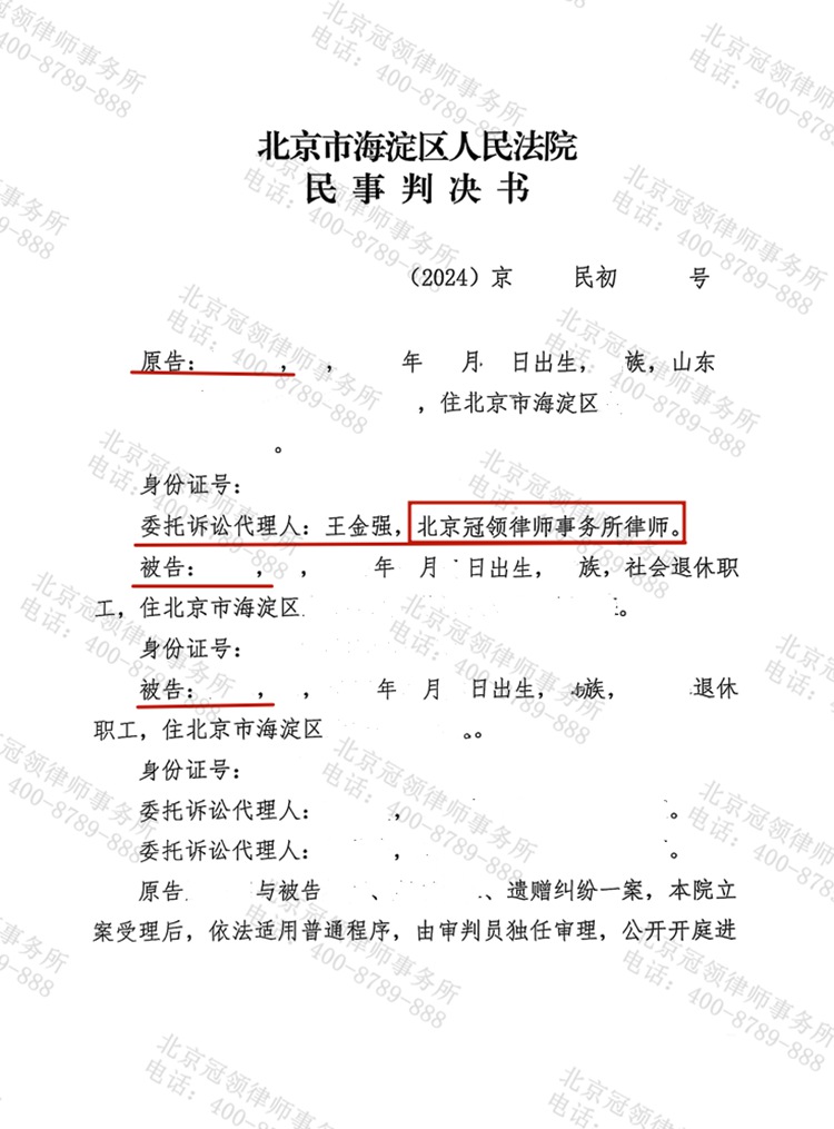 2023年,邹老太太去世,遗赠给外孙郑先生北京海淀一套未办证的公房。郑先生主张继承时,舅舅刘某提出了质疑。为解决此事,郑先生委托了北京冠领律师事务所。2025年1月,在冠领律师的努力下,法院判决郑先生继承邹老太太与单位签订的购房合同权利义务。