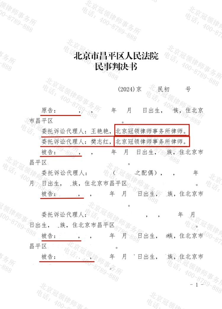 通过分家和母亲的代书遗嘱,刘先生有权得到北京昌平某宅院内五间瓦房的所有权。但父母去世后,刘先生的五个兄妹仍对此产生了异议。2024年,为维权,刘先生委托冠领律所代理此案。庭审中,面对质疑,律师从医学、法律等多个专业角度论证,帮助刘先生得到房屋所有权以及宅基地使用权。