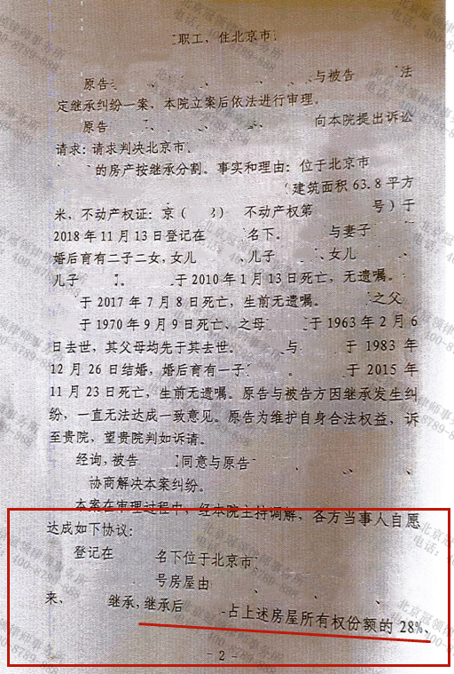 近日,北京冠领律师事务所张莹律师代理的一起北京西城法定继承纠纷案调解成功。在张律师的努力下,委托人的合法权益得到维护,双方当事人也从矛盾对立到互相理解,因继承引发的这场纠纷最终得到圆满解决。